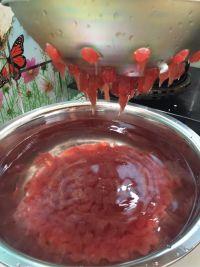 3.捞出红苋菜,用网筛过滤一下晾凉备用!