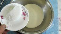 2.蛋黄中加入一少半白糖和2-3滴香精用打蛋器打至糖化开